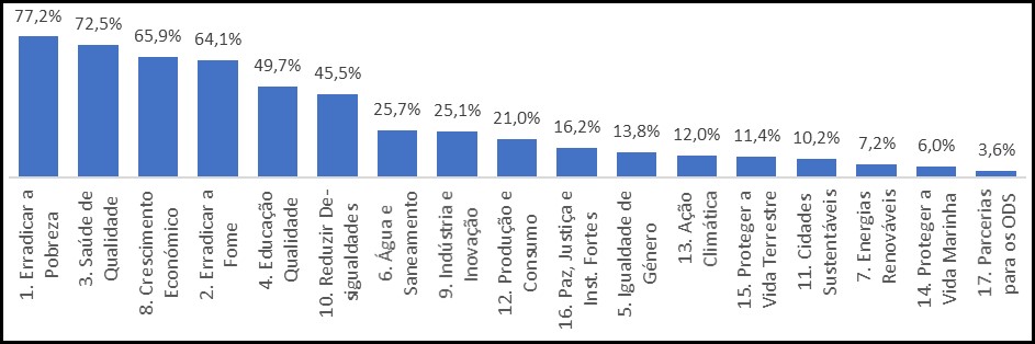 Na avaliação geral atribuída à prossecução nacional da Agenda 2030, os especialistas respondentes posicionaram-se de forma intermédia (média de 3 numa escala entre 1 e 6) dependendo dos diferentes objetivos (Figura 3). Os ODS com uma avaliação mais negativa relacionam-se, sobretudo, com as desigualdades sociais, o sistema económico, e as áreas urbanas. Avaliação, aliás, consonante com as análises realizadas ao nível internacional pré-pandemia, como mostram os resultados do Relatório da ONU ”Sustainable Development Outlook 2020”.