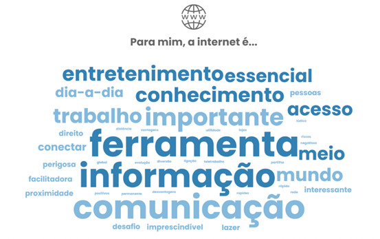 Quando questionados sobre os aspetos positivos de usar a Internet, os participantes mencionaram a facilitação e democratização do acesso à informação e serviços, bem como as oportunidades de emprego e formação. Em oposição, os principais aspetos negativos associados ao uso da internet são o risco de cibercrimes, a cibervigilância, o ciberbullying, a perda de privacidade, a possível adição e a crescente sedentarização.