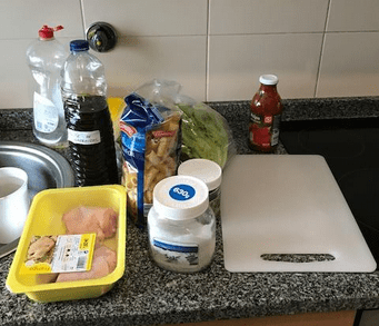 Figura 1. Preparação de um prato de frango e salada. Fonte: autores.