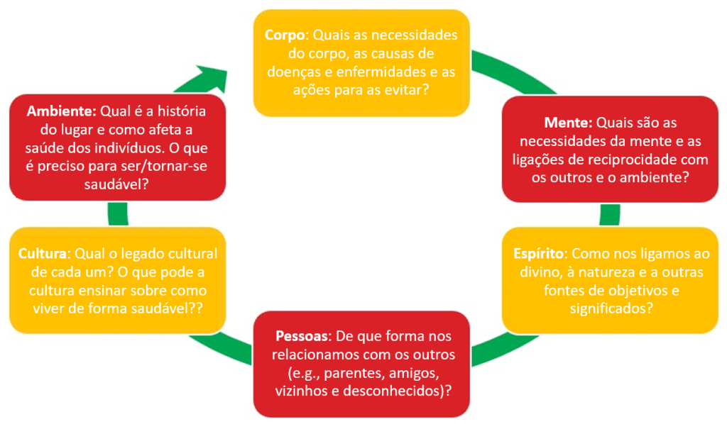 Aliás, dando conta dessa complexidade e da necessidade de a abarcar, já em 1946, no primeiro dos princípios defendidos no preâmbulo do documento de constituição da Organização Mundial de Saúde (OMS), se defendia que “a saúde é um estado de completo bem-estar físico, mental e social e não apenas a ausência de doença ou enfermidade”. Esta visão alargada e não fragmentada da saúde – saúde holística – assenta em, pelo menos, 6 dimensões interligadas, como se procura ilustrar na Figura 2: corpo, mente, espírito, pessoas, cultura e ambiente.