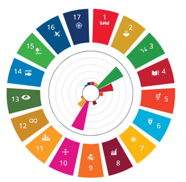 De acordo com os dados expostos na Figura 4, a predominância dos valores sociais (“Dimensão Pessoas” na linguagem da Agenda 2030) é inquestionável, destacando-se, de entre eles – e como seria de esperar, dado o propósito mais imediato do PBS –, a saúde com mais de 90% de projetos a referi-la. No entanto, outras dimensões não são ignoradas. Pelo contrário, as dimensões instrumentais do Desenvolvimento Sustentável (Paz e Parcerias) rivalizam pelos lugares de liderança, assim como o ODS 11 – Cidades e Comunidades Sustentáveis e outros ODS ligados a questões socioeconómicas.