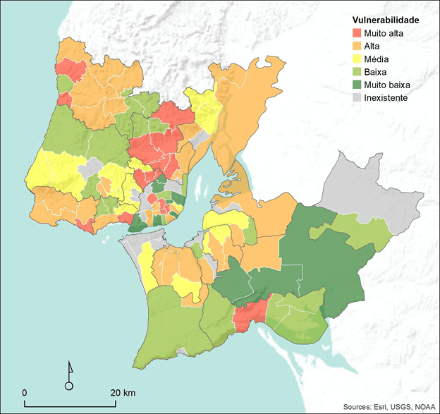 Figura 2 Vulnerabilidade futura ao perigo de cheias rápidas e inundações urbanas, Plano Metropolitano de Adaptação às Alterações Climáticas, 2019. AML-CEDRU.